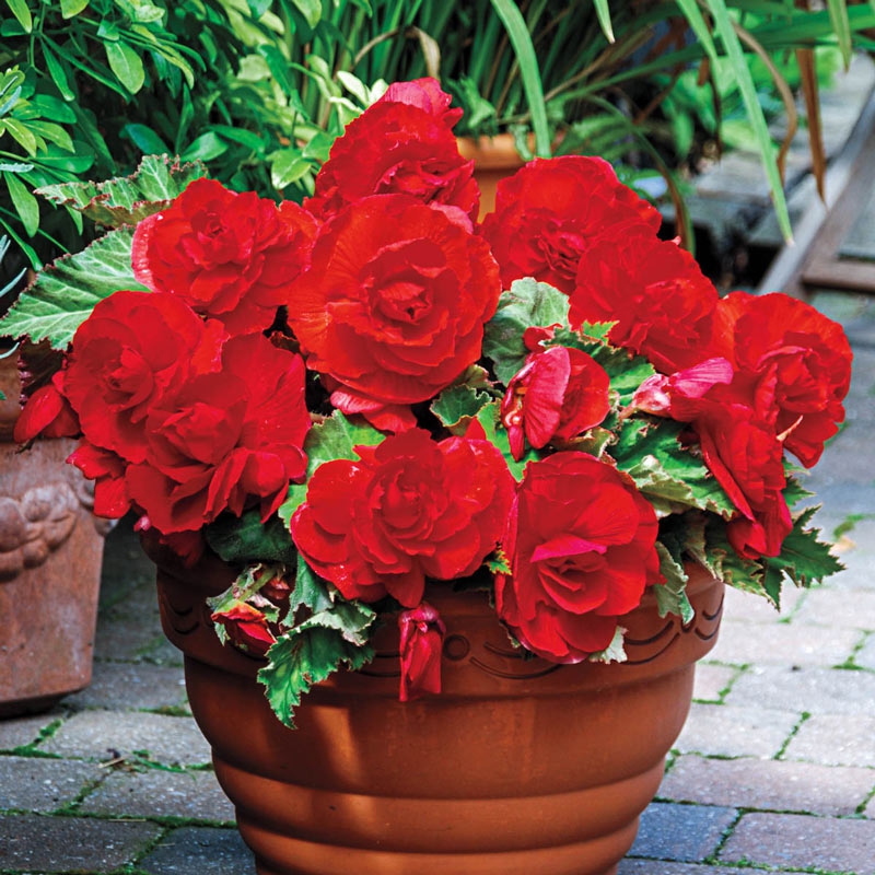 Die rotblühende Begonie ist eine Pflanze, die sich für den Anbau im Topf oder direkt im Beet eignet. Die niedrig wachsenden Pflanzen, die asymmetrische Blätter mit gezackten Rändern haben, blühen den ganzen Sommer über bis zur ersten Herbstkälte. Diese spektakuläre Begoniengruppe erfreut den Gärtner mit der Fülle und dem Aussehen der Blüten, die an offene Rosen erinnern. Diese Begonie ist mehrjährig, vorausgesetzt, Sie schützen die Knollen vor kalten Temperaturen. Legen Sie die von Trieben und Erde befreiten Knollen in ein luftiges, mit Torf gefülltes Gefäß und lagern Sie sie in einem Raum mit einer stabilen Temperatur von etwa 10 °C. Großblütige Knollenbegonien sollten an einem überwiegend schattigen Ort gezogen werden, da ihre fleischigen Triebe und Blätter leicht verbrennen können. Der Standort sollte auch geschützt sein, damit starke Winde die Büschel mit den großen Blüten nicht zerbrechen.