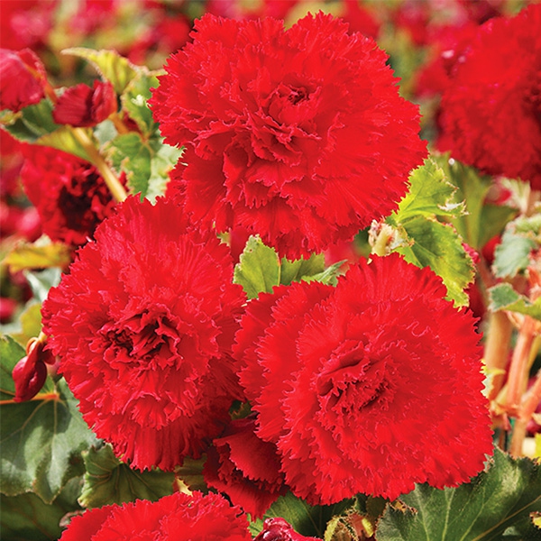 Die rotblühende Begonie ist eine Pflanze, die sich für den Anbau im Topf oder direkt im Beet eignet. Diese Begonien haben große, dichte, gefüllte Blüten mit gespaltenen Blütenblatträndern - ähnlich wie bei Nelken. Diese spektakuläre Begoniengruppe erfreut den Gärtner mit der Fülle und dem Aussehen der Blüten, die an offene Rosen erinnern. Diese Begonie ist mehrjährig, vorausgesetzt, Sie schützen die Knollen vor kalten Temperaturen. Legen Sie die von Trieben und Erde befreiten Knollen in ein luftiges, mit Torf gefülltes Gefäß und lagern Sie sie in einem Raum mit einer stabilen Temperatur von etwa 10 °C. Großblütige Knollenbegonien sollten an einem überwiegend schattigen Ort gezogen werden, da ihre fleischigen Triebe und Blätter leicht verbrennen können. Der Standort sollte auch geschützt sein, damit starke Winde die Büschel mit den großen Blüten nicht zerbrechen.