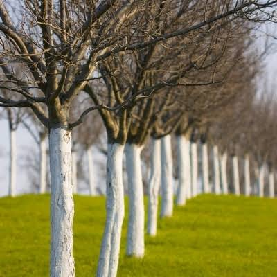Baumstammfarbe ist eine biologisch abbaubare Farbe zum Schutz von Baum- und Strauchstämmen. Die weiße Farbe reflektiert die Sonnenstrahlen und verhindert so eine unerwünschte Aufheizung des Stammes an sonnigen Wintertagen. Dadurch wird der Stamm vor Temperaturschwankungen geschützt, die zu Frostrissen führen können. Auch das Risiko, dass Pilzkrankheiten den Baum befallen, wird dadurch deutlich verringert. Der Stammanstrich schränkt keine der Vitalfunktionen des Baumes ein und ist für Tiere völlig ungefährlich. Bei rechtzeitiger Anwendung hilft der Anstrich, den Befall und das Auftreten bestimmter Schadinsekten sowie das Aufkommen von Moosen und Flechten zu verhindern. Der Anstrich kann auf allen Arten von Obstbäumen und Sträuchern sowie auf allen anderen Arten von Zierbäumen verwendet werden.