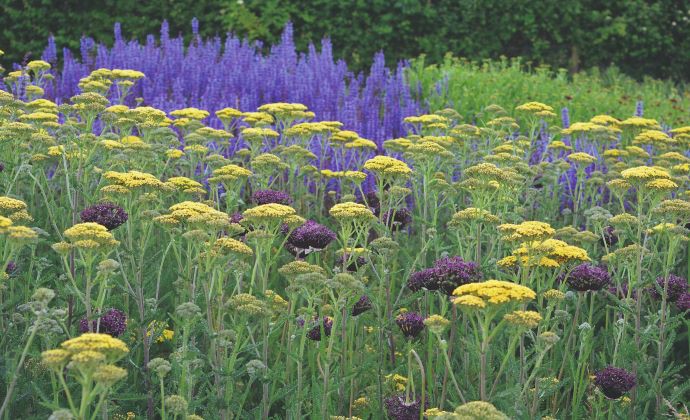 Salvia, Katzenschwanz und Kavyl sind ein Stauden-Trio, das sich seit langem in der Kombination bewährt hat. Alles Neutrale kann mit diesem Trio kombiniert werden, wie z.B. Crookshanks, Alchemilla oder Hosta und der Erfolg ist garantiert. Der Vorteil dieser Staudenkombination ist, dass sie fast das ganze Jahr über blühen.