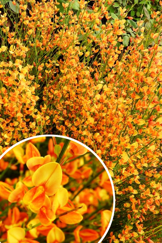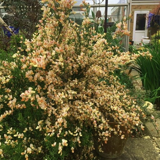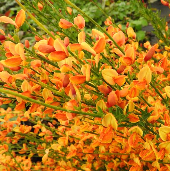 Cytisus Apricot Gem bildet einen dichten, duftenden, gelb-orangen Strauch, der eine Höhe und Breite von 100-120 cm erreicht.