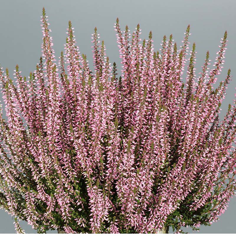 Heather Pink Angie ist eine der reich blühenden Sorten, die zur Blütezeit mit hellrosa bis violetten Blüten bedeckt sind.