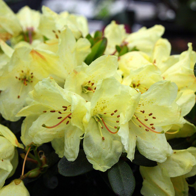 Rodendron Wren ist ein kleinblättriger Zwergstrauch mit einer Fülle von glockenförmigen gelben Blüten. Die Blätter sind ledrig, olivgrün und färben sich im Winter und beim Austrieb bronzefarben. Diese Art ist langsam wachsend. Sie blüht üppig und verträgt direkte Sonne gut. Sie ist auch für den Steingarten geeignet. Bei der Reife wird sie etwa 0,5 m hoch und etwas breiter und bildet einen schönen ovalen Solitär mit einer großen Anzahl kleinerer gelber Blüten.