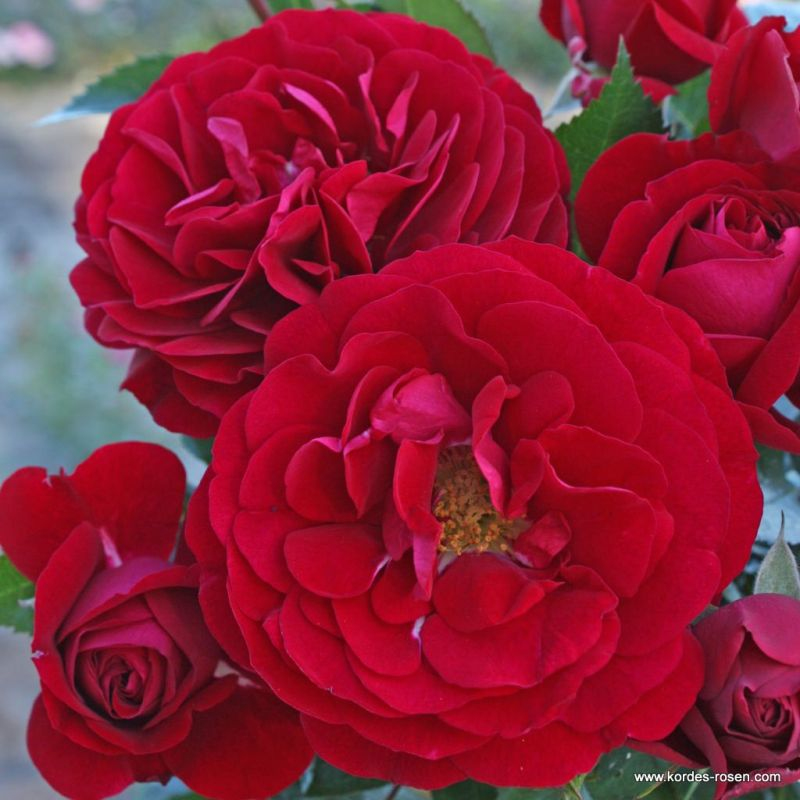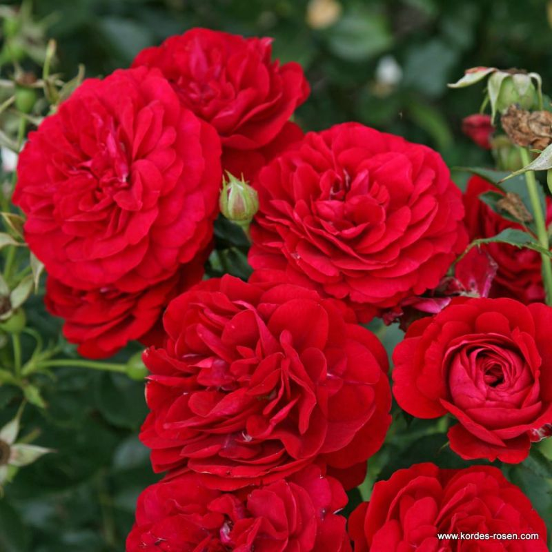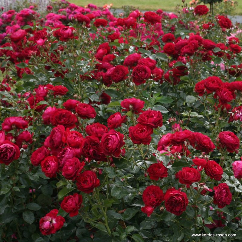 Rosa Bordeaux ist neu für 2014. Sie hat perfekt geformte, ca. 10 cm große, samtige Blüten in der Farbe von Rotwein. Sie erreicht eine Höhe von 80 cm. Sie ist weniger aromatisch, blüht aber reichlich und wiederholt. Ausgezeichnete Resistenz gegen Schwarzfleckenkrankheit und Mehltau.