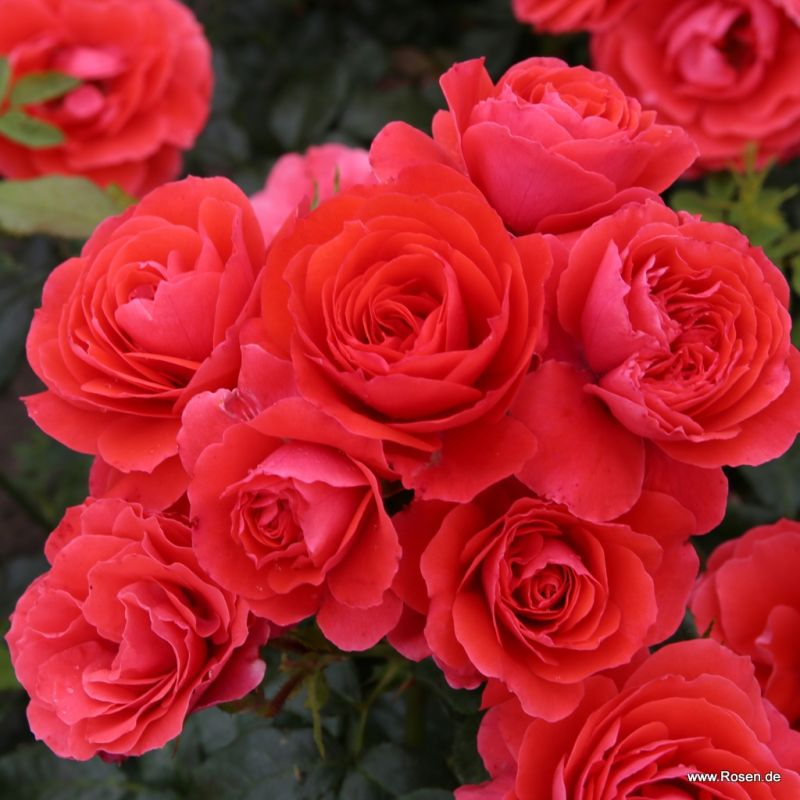 Die Rose Cherry Girl ist eine mittelhohe Rose mit einer kräftigen roten Farbe.