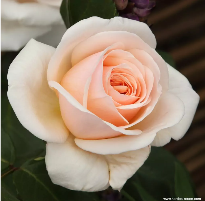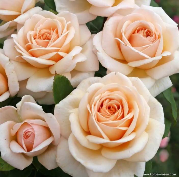 Eine gut wachsende Teerose mit großen und eleganten Blüten, die einen zarten Duft verströmen, kombiniert mit einer herrlichen pastellfarbenen Aprikose.