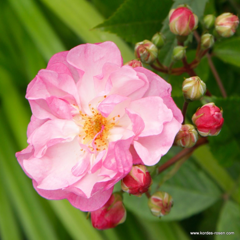 Die kleinblütige Schleppende Rose aus der Silhouette-Gruppe ist das Beste, was Sie neben einem Zaun oder einer Laube pflanzen können. Außerdem ist diese Sorte äußerst gesund und widerstandsfähig. Sie hat schöne offene Blüten, die in der Mitte weiß sind und am Rand einen rosa-violetten Schimmer haben. Sie eignet sich auch für den Anbau in Kübeln, da sie nicht so massiv wächst.