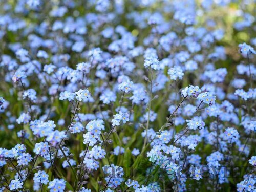 Wald-Vergissmeinnicht ist eine beliebte zweijährige Pflanze, die kompakte und dichte Büschel von etwa 20 cm Höhe bildet.